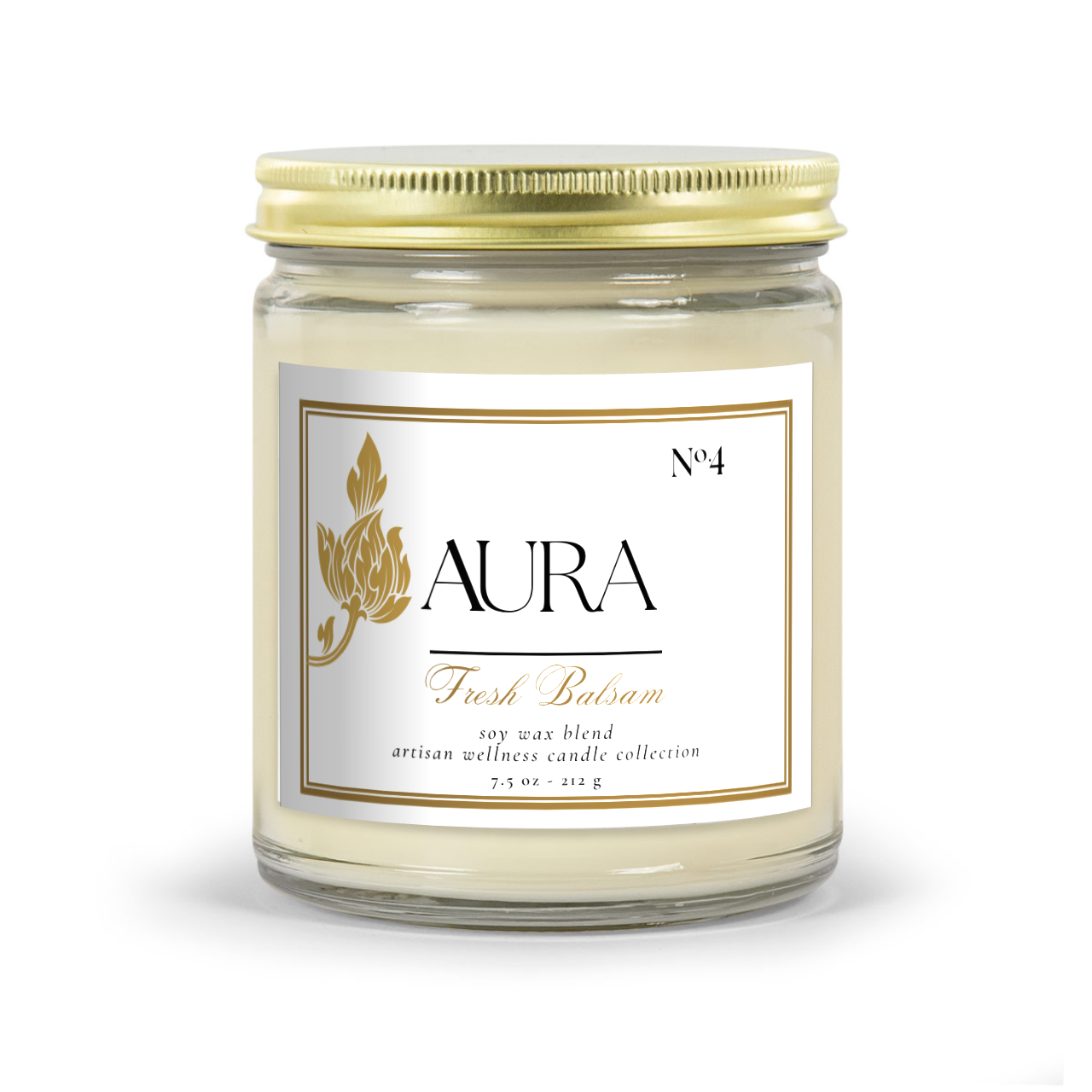 Aromatherapy Candle - Aura Aromas Artisan Wellness Candle Collection: Classic Amber Or Classic Clear Vessel Fresh Balsam Scent