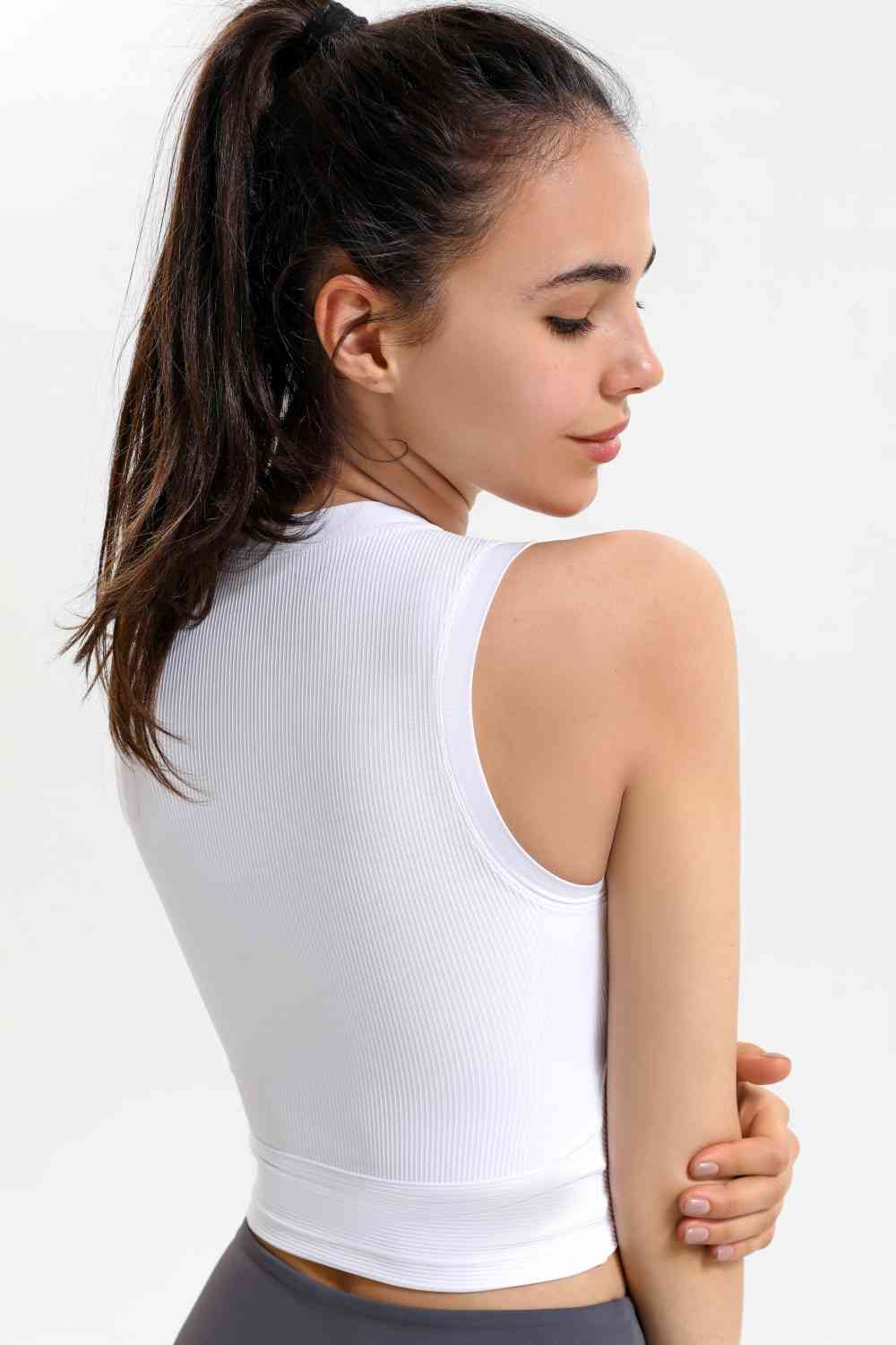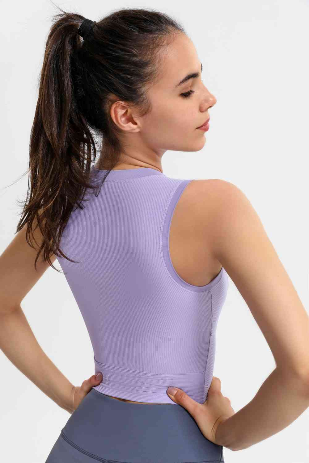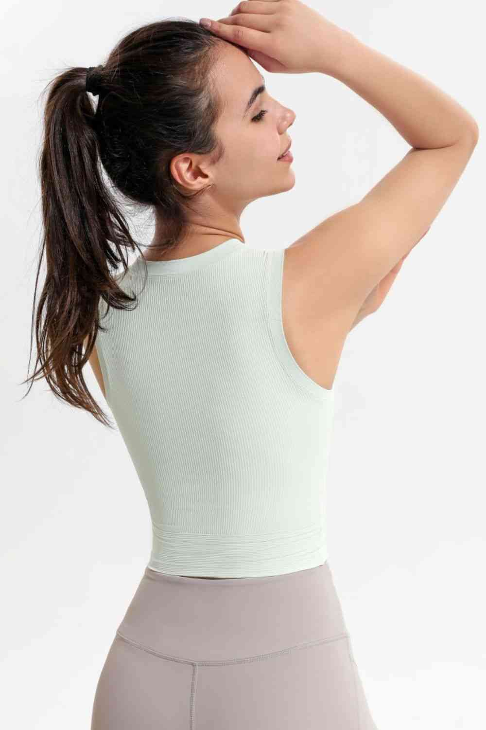 Ribbed Crisscross Round Neck Cropped Sports Tank