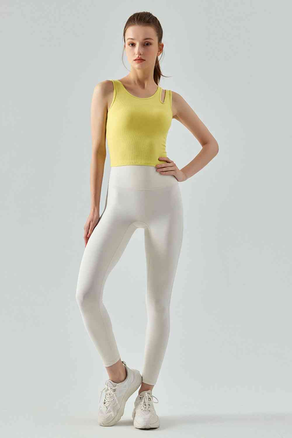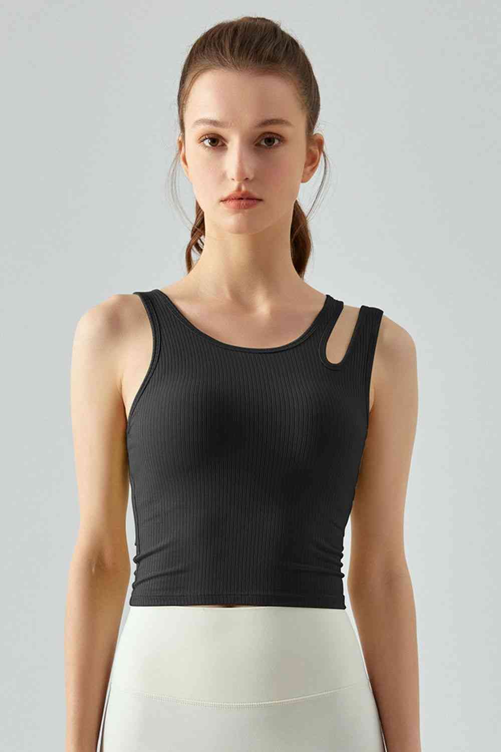 Ribbed Round Neck Sports Tank Top