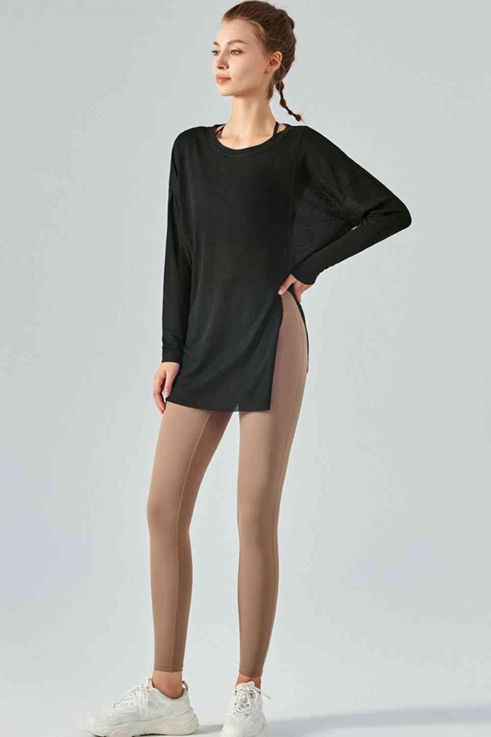 Round Neck Slit Sheer Tunic Sports Top